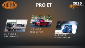 Die HARA-Sonderehrung „Best Appearing Team 2025“ ging an das „Gremlin Drag Race Team“ um Cheyenne Visser. Die Auszeichnung wurde vom Team-Mitglied Erich Pflug in Abwesenheit von Cheyenne Visser entgegen genommen.