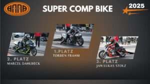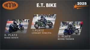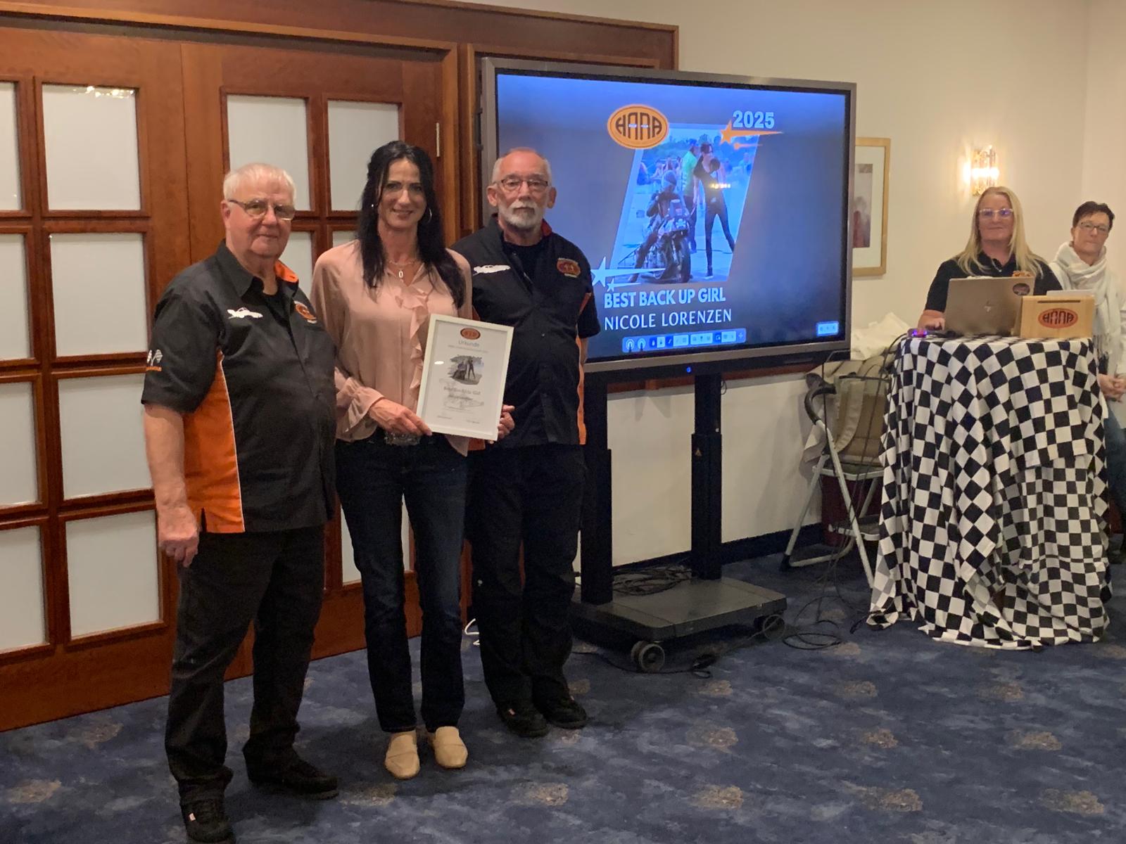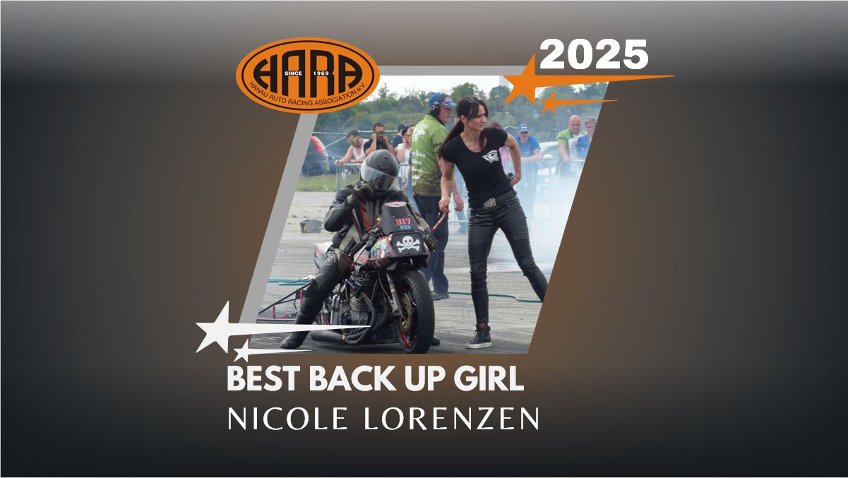 Der HARA fiel auf, dass die Dragbike-Back-up-Girls bislang oft unterrepräsentiert waren. Daher ging die HARA-Sonderehrung „Best Back-up Girl 2025“ an Nicole Lorenzen vom Torben-Frahm-Super-Comp-Bike-Team.